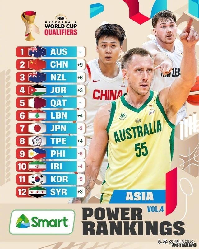 开云体育下载网址-世预赛亚大区最新实力榜:中国男篮从11狂飙至第2 仅落后澳大利亚